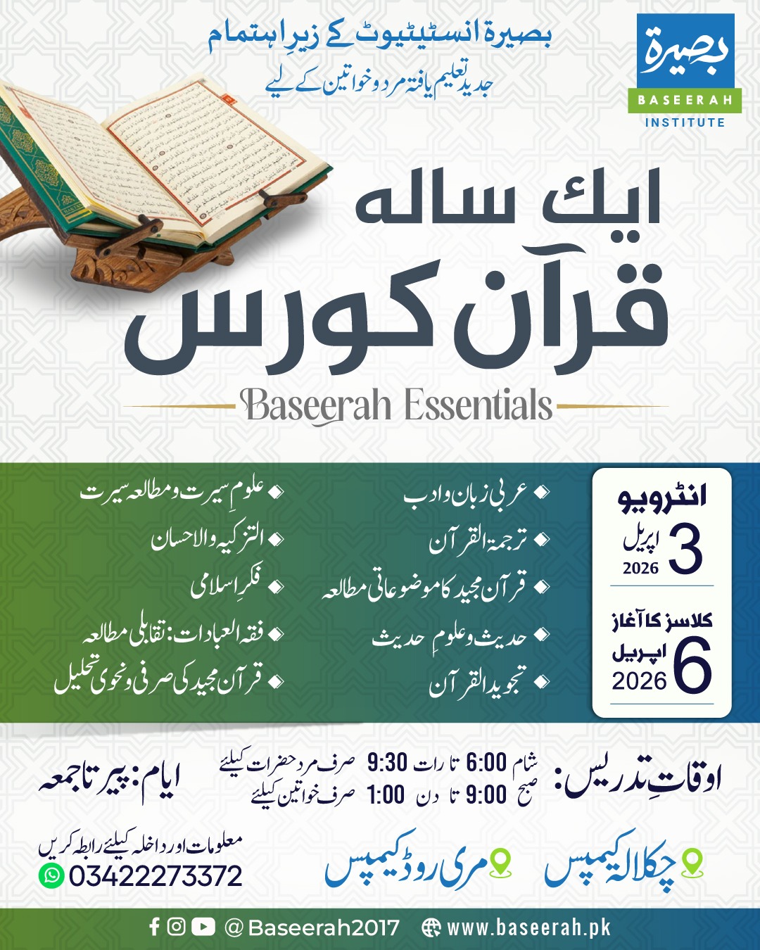 This is a 10 months comprehensive course that is scholarly and knowledge oriented. The students who successfully pass Baseerah Essentials are eligible to take part in this course. Classes will be held...