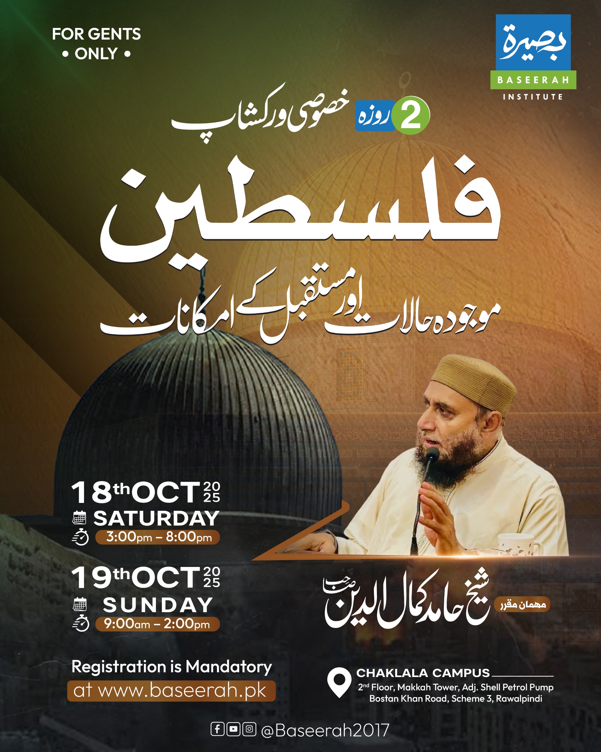 Join us for a two-day special workshop on Palestine: Current Situation and Future Prospects with Shaykh Hameed Kamaluddin. This insightful program will shed light on the ongoing crisis in Palestine, its historical and political context, and the possibilities that lie ahead for the Ummah.
